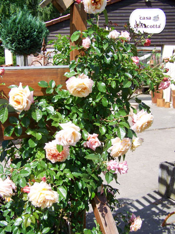 ' Kletterrosen ' ... machen ihren Weg Obwohl Kletterrosen die am stärksten wachsenden Rosen sind, kommen sie mit extrem wenig Gartenflächen zurecht. Voraussetzungen für diese blütenreiche Flächenausnutzung ist eine stabile Rankhilfe, die den Blütenakrobaten dauerhaften halt bieten; denn Kletterrosen können nicht selbständig klettern. Die Triebe der Kletterrosen wollen also geführt werden. Nutzen Sie dese Schwäche der Königin der Blumen, um die rosigen Tentakeln in blütenübersäte Triebe zu verwandeln, die eine Hauswand oder einen Rosenbogen mit einem duftenden Blütenmantel zu überziehen vermögen. |