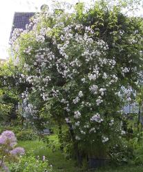' Ramblerrosen ' ... selten gewordene Schönheit Über viele Jahrzehnte waren diese seltenen Schönheiten in Vergessenheit geraten. Schon eine einziger Rambler-Rose kann eine alten Baum wieder zum Erblühen bringen. Diese Rose schlängelt sich auf der Suche nach Sonnenlicht durch die Baumkrone und hängt üppig blühend aus dieser herunter. Rambler-Rosen haben nur einen Blütenflor - wissen diesen aber prächtig zu präsentieren. |